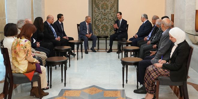 President Bashar Al-Assad on Monday received members of the General Secretariat of the Union of the Palestinian Communities and Organizations – Europe, which held its 5th Conference in Damascus on Sunday.