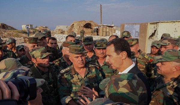 President Al-Assad made the remarks during his meeting with soldiers and officers of the Syrian Arab Army on the front lines in al-Hbeit town of Edlib countryside.