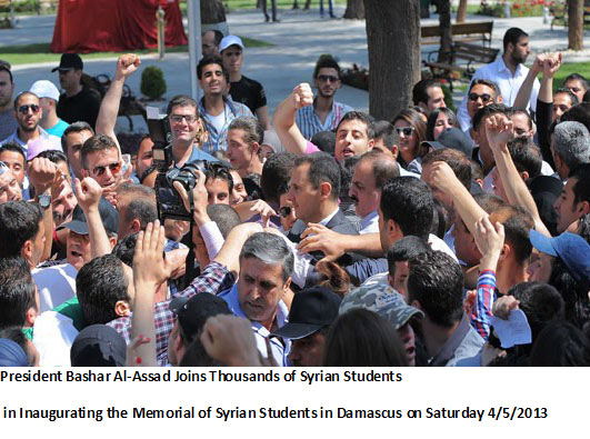 President Al-Assad Inaugurates Memorial of Syrian Universities Martyrs Photos from Syria On May 4, 2013 Share Share FacebookTwitterWhatsAppEmail