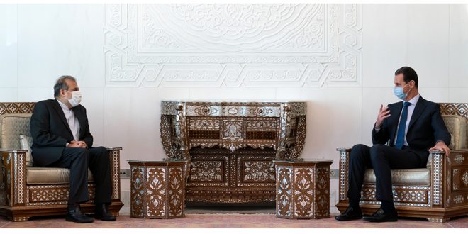 President Bashar Al-Assad on Wednesday received Ali Asghar Khaji, Senior Aid to Iran’s Foreign Minister for Political Affairs, and the accompanying delegation.
