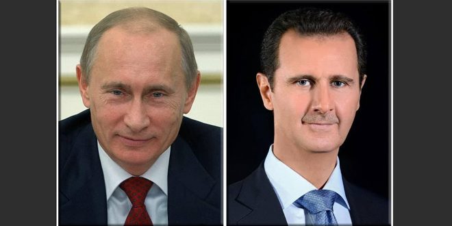 For his part, President Putin expressed his best wishes to President Al-Assad and to the Syrian people, confirming his country’s firm support for the sovereignt, unity and territorial integrity of Syria. He also stressed Russia’s keenness on attaining stability in the country and supporting the reconstructoin process, wishing the Syrian people peace and prosperity.