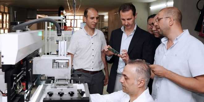 Damascus, (ST) – President Bashar Al-Assad on Wednesday visited a number of factories and facilities at Adra industrial city in Damascus countryside which were erected under the circumstances of the war and blockade. The owners of the factories and facilities at Adra industrial city have succeeded in continuing their work despite all difficulties and challenges.