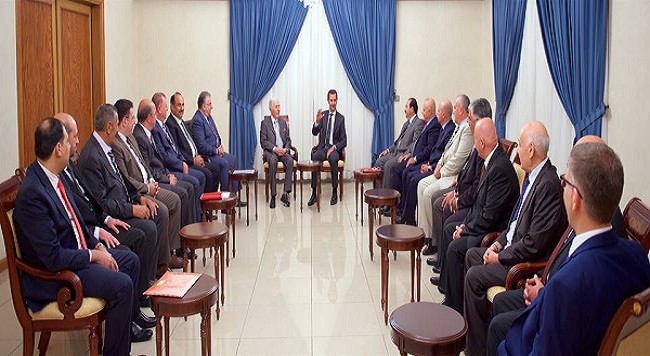DAMASCUS, (ST)-Syria’s steadfastness in the face of the terrorist war, which, in a big part of it, carries extremist and takfiri mentality that has nothing to do with the Syrian people, has been the result of the Syrian people’s awareness and their confidence in their army, President Bashar Al-Assad underscored during a meeting on Sunday with a delegation of dignitaries and representatives of civil society as well as social, cultural and popular figures from the Syrian province of Hama, according to the Syrian Presidency website.