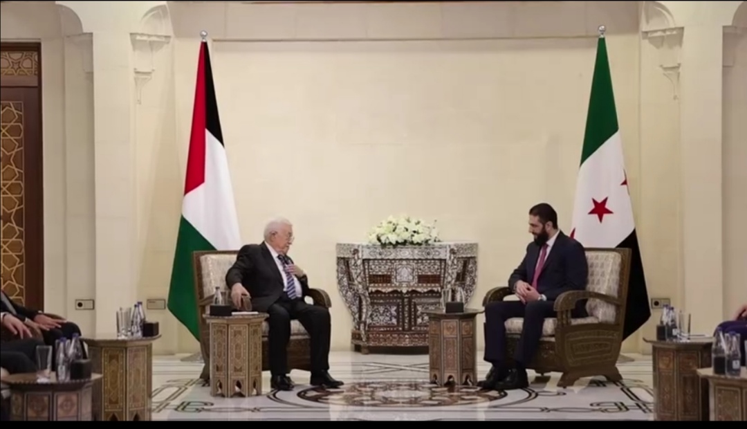 President Al Shara’a meets Palestinian President Abbas Domestic Newsfeature On Apr 18, 2025 Share President of the Republic Mr. Ahmed Al-Sharaa and Foreign Minister Mr. Asaad Al-Shaibani receive Palestinian President Mr. Mahmoud Abbas and his accompanying delegation at the people’s Palace in Damascus. Amal Farhat Share FacebookTwitterWhatsAppEmail