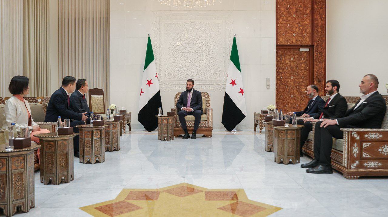President Ahmad Al-Sharaa met at the People’s Palace with a delegation of businessmen from the People’s Republic of China, headed by Mr. Zhou Lijiang, General Manager of AOJ-TECHNOLOGY in the Middle East.