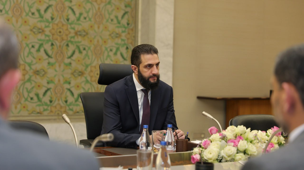 President Ahmad Al-Sharaa meets with Minister of Culture  Mohammed Saleh and several officials from the ministry to discuss its role in promoting and introducing Syrian culture, the plans in place for developing work, as well as presenting several future projects aimed at enhancing Syrian culture both regionally and globally.