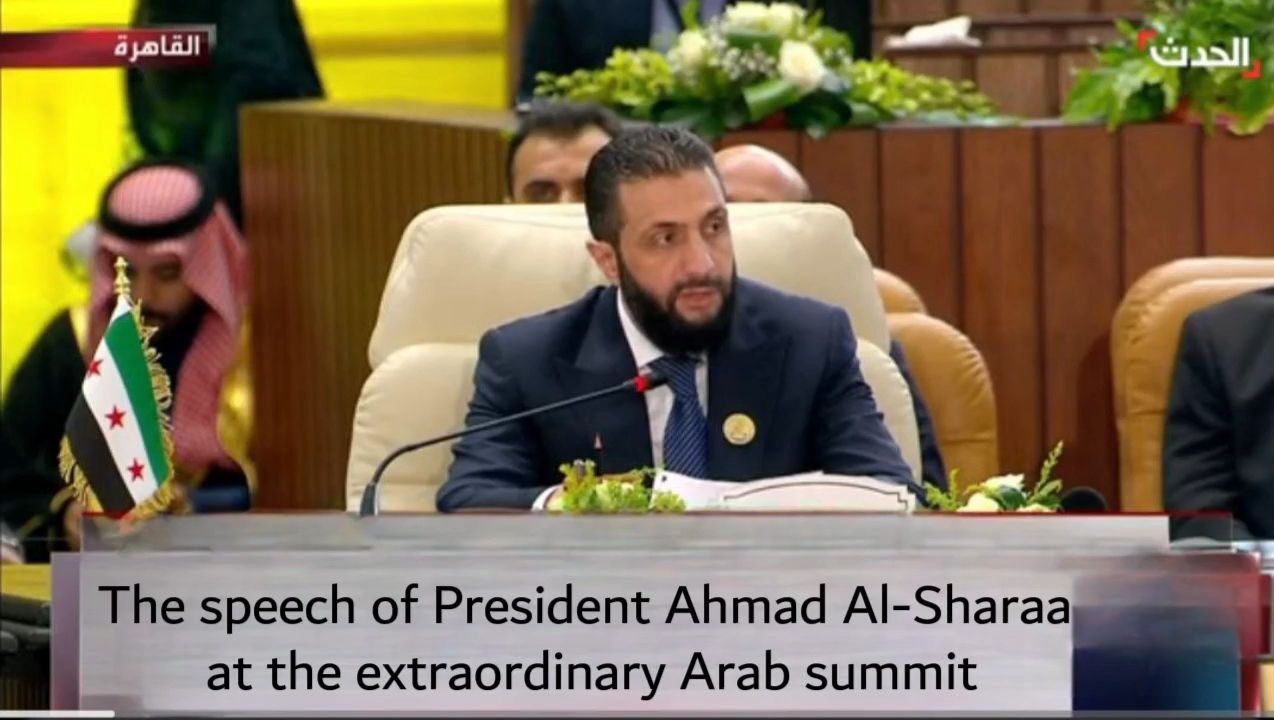 The speech of President Ahmad Al-Sharaa at the extraordinary Arab summit “Palestine Summit” in Cairo.