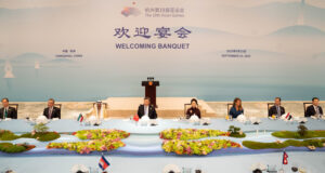 Beijing, (ST) – President Bashar Al-Assad and First Lady Asma Al-Assad attended the official banquet hosted by Chinese President Xi Jinping and his wife Ping Liyuan in honor of the leaders and heads of delegations invited to the opening ceremony of the 19th Asian Games, which begins this evening in the Chinese city of Hangzhou.