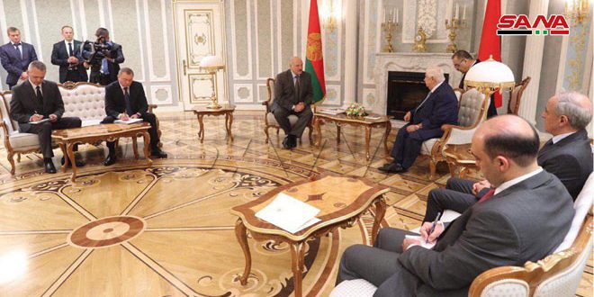 Al-Moallem conveyed President Bashar Al-Assad’s greetings and best wishes to President Lukashenko and expressed the Syrian people’s high appreciation over the principled and firm stances of Belarus in support for Syria in the confrontation of the terrorist war and at international forums and organizations.