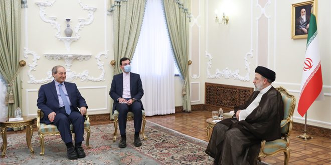 Tehran, SANA-President of Iran, Ebrahim Raisi, described as “strategic” the relations between Syria and Iran, affirming the need for boosting and developing these relations in all domains.
