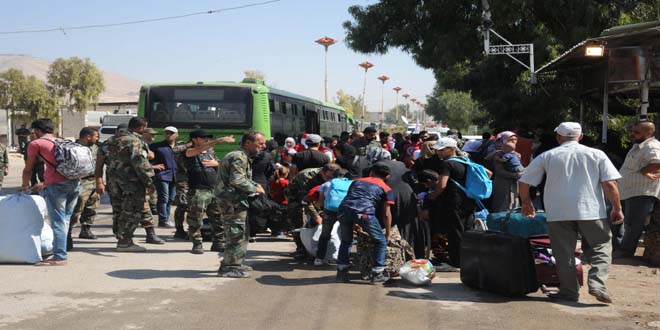 Some 4000 people were also evacuated and relocated to the makeshift center in Harjalleh, which the Governorate of Damascus Countryside had prepared and equipped with all basic requirements.