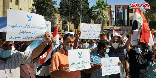 Protest stand staged denouncing US aggression on Syrian Arab Army checkpoint
