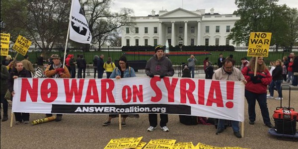 Washington’s strike on Syria is being justified by what is called “humanitarian motives” but organizers of the protests insist this couldn’t be further from the truth. As with the imaginary weapons of mass destruction in Iraq, “again, the US government asserts that the targeted government possesses and has used weapons of mass destruction as the rationales for another bombing campaign.”