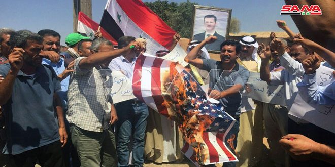 The agency reported that the protesters burned the US flag and demanded the exit of the occupation forces from Syria and putting an end to their acts.