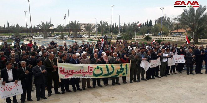 Provinces – Protests on Thursday continued in a number of provinces in condemnation and rejection of US President Donald Trump’s declaration on the occupied Syrian Golan, SANA reported.