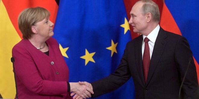 Moscow,(ST)_Russian President Vladimir Putin and German Chancellor Angela Merkel discussed developments in the situation in Syria and Libya, stressing the necessity of a ceasefire in Libya and the speedy resolution of the crisis there.