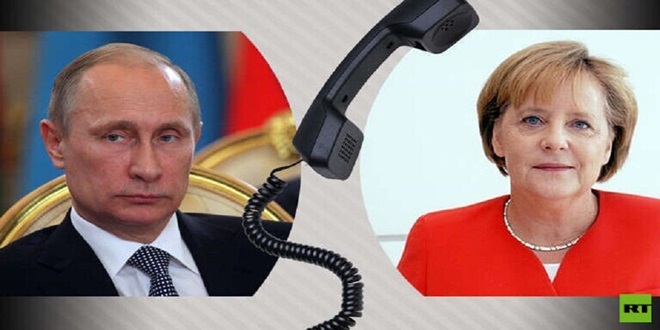 Russian President Vladimir Putin discussed with German Chancellor Angela Merkel during a phone call on Friday the political solution to the crisis in Libya and the situation in Syria and the Ukraine.