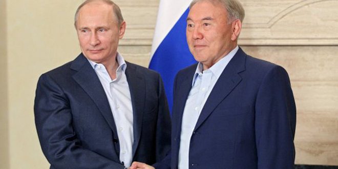 Moscow – President of Russia Vladimir Putin and President of Kazakhstan Nursultan Nazarbayev discussed on Friday preparations for the upcoming talks on crisis in Syria which will take place in Astana, the capital of Kazakhstan, SANA reported.