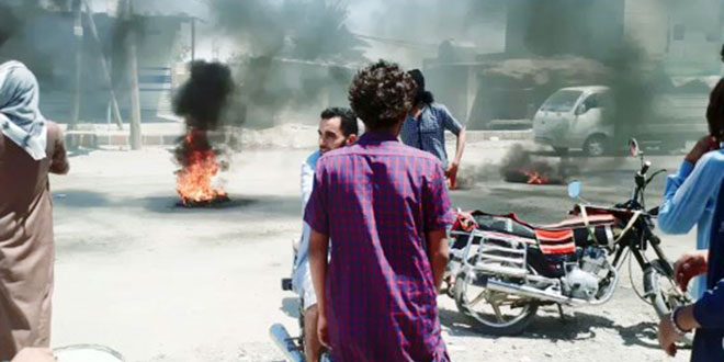 Civil sources reported to SANA that the “Qasad” (SDF) groups associated with the American occupation forces besieged the towns of Al-Shuhail, Al-Basra, Al-Hawaij and Zeban in the countryside of Deir al-Zour and closed all its entrances completely. They prevented the residents from entering and leaving their towns in an attempt to control the protests taking place in several villages and towns of Deir al-Zour countryside and demanding the expulsion “Qasad” groups, who are carrying out criminal practices against the people of the region.
