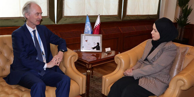 This came during a meeting held between Qatar’s Permanent Representative to the United Nations, Alya Ahmad bin Saif Al Thani, with the Special Envoy of the Secretary-General for Syria, Geir Pedersen, at the headquarters of the Permanent Mission in New York, according to the Qatar News Agency (QNA).