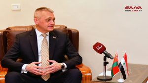 In an interview with SANA on the occasion of his country’s National Day, which falls on July 3, the day of the liberation of Belarus from Nazism, Ambassador Sloka said that his country is interested in developing and expanding cooperation with Syria in all political, economic and social fields. He referred to the effective role played by the joint government committee and the direct meetings of experts in both countries in creating mechanisms and opportunities to develop cooperation between them. He added that there is coordination between the two countries to put the agreements signed between them into practice.