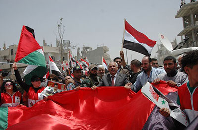 must be stressed that the same day the Syrian National Army liberated al-Qusayr thegovernor of Homs province came to the city to support the citizens and make an account