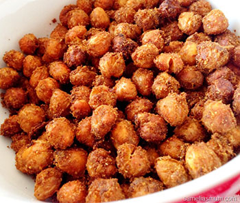 Pour the chickpeas into the bowl and stir through the spicy oil until they’re all coated.