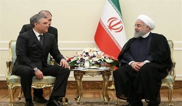 Speaking at a meeting with Russian State Duma Speaker Vyacheslav Volodin on the sidelines of a regional conference on counter-terrorism in Tehran on Saturday, Rouhani said over the past years, cooperation between Iran and Russia have been very close and ties in all areas have developed, according to Tasnim News Agency.