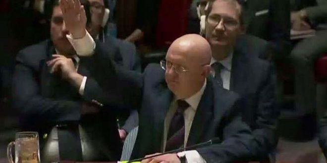 NEW YORK, (ST)-Russia on Thursday vetoed a US draft resolution on extending the mandate of the UN OPCW Joint Investigation Mechanism (JIM) for investigating the use of chemical weapons in Syria.
