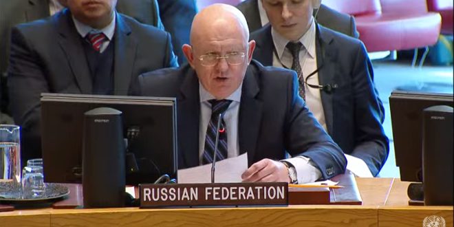 The Russian Permanent Representative to the United Nations Vasily Nebenzya said following the voting session that his country vetoed the draft resolution because it is unacceptable, stressing that it is not permitted to transport humanitarian aid to Syria without the permission of the Syrian government particularly as the Syrian authorities have retaken control of most of Syria’s territory.