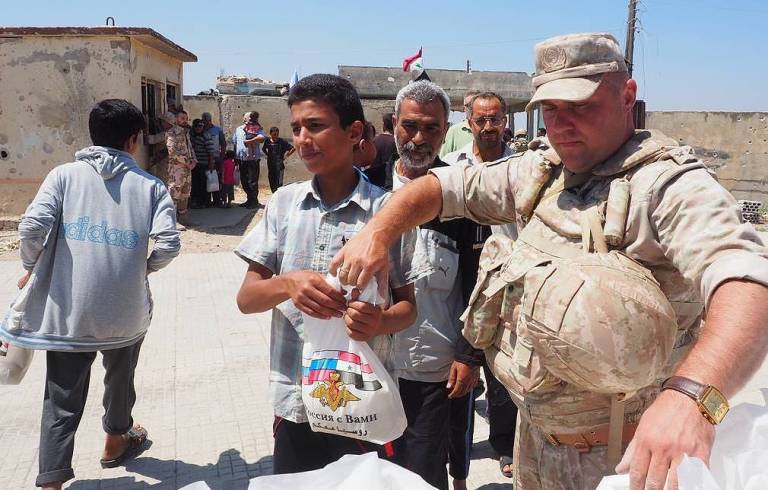 ALEPPO /Syria – Officers of the Russian Center for Reconciliation and coordination in Syria delivered over three tonnes of food and clothing to the settlement of Maaret Um Haush in the Aleppo province, Denis Shatailo, a spokesman for the center, informed reporters.