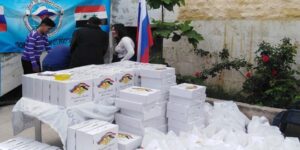 As part of the Russian Federation’s support for the Syrian people in the face of the difficult circumstances caused by the repercussions of the war, the western coercive measures and the earthquake disaster, the Russian Coordination Center in Syria on Saturday distributed 5 tons of humanitarian aid in the village of Kilmakho in Lattakia countryside.