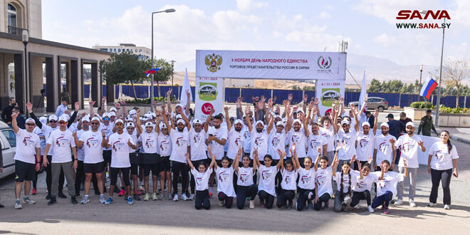 Damascus (ST) – The Russian Trade Representation in Syria, in cooperation with the General Sports Federation, organized a sports marathon today in the Yafour area in the Damascus countryside on the occasion of National Unity Day in Russia.