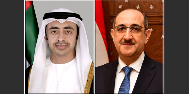 Minister of Foreign Affairs and Expatriates Bassam Sabbagh discussed with Deputy Prime Minister and Minister of Foreign Affairs of the United Arab Emirates Abdullah bin Zayed Al Nahyan, during a phone call yesterday, the fraternal relations between the two brotherly countries and ways to enhance them, in a way that serves the common interests of the two countries.