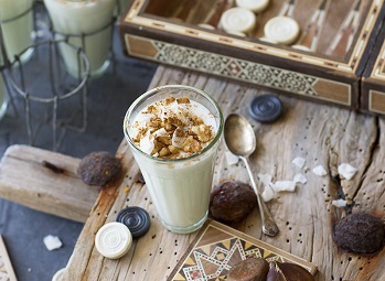 Sahlab or salep is a popular winter drink in Syria and throughout the Middle East. It is white, warm and starchy creamy drink that is dusted with a little cinnamon