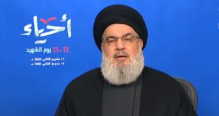 Sayyed Nasrallah said in a speech on the occasion of Martyr’s Day today: “What Syria is suffering from today after its victory over the global war ,on the economic and living levels is terrible ,caused by the so-called Caesar’s Law enacted by the Americans who, by their own admission, brought hundreds of thousands of takfiris, but they could not bring down Syria. After their failure, they want hunger and cold to bring it down in the winter, as some US Senators admit.