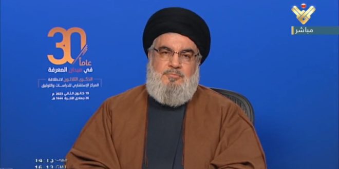 Regarding choosing a Lebanese President, Nasrallah said that Lebanon needs a brave President who is ready to sacrifice and who doesn’t fear from any US threats.