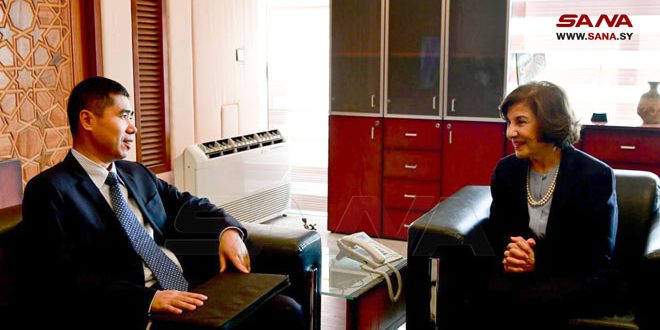 DAMASCUS, Dec.18, (ST)-Today, the Special Advisor to the Presidency of the Republic, Buthaina Shaaban, discussed with the Director-General of the Department of West Asian and North African Affairs of the Chinese Foreign Ministry, Wang Di, the fields of joint cooperation and their future horizons.