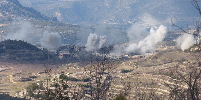 The source said the attack was caused by artillery shelling from across the Turkish side and took place while the journalists were touring Kensabba area, 60 km northeast of Lattakia city, to which the army and the popular defense groups restored security on February 18th.