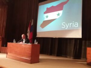 A lecture entitled “Cooperation between the Syrian and Russian Missions to the Organization for the Prohibition of Chemical Weapons and the reality of the current work in the organization” was given today at the ‘Al-Assad” Library in Damascus by Alexander Shulgin, Russia’s Ambassador Extraordinary and Plenipotentiary to the Netherlands and Permanent Representative of the Russian Federation to the OPCW.