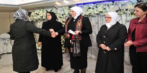 The honoring ceremony was held Saturday in the ‘Yasmin al-Sham’ hall in Damascus under the slogan” the homeland’s jasmines do not bow down.’