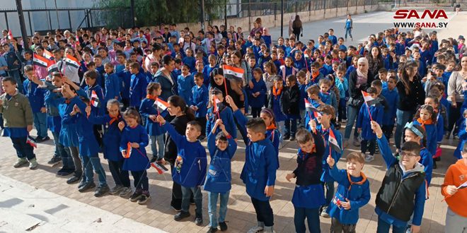 Syrian students and teachers in all the country’s schools carried out a solidarity stand in support of the Palestinian people and indenounciation of the Zionist entity’s aggression and crimes against the children of the Gaza Strip.