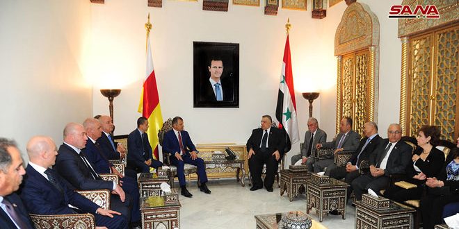 SANA said that during the meeting, Bibilov affirmed that his country will work to enhance aspects of cooperation, especially the political, economic and parliamentary with Syria, which represents the heart of civilization in the world and everyone should do everything in his power to preserve the Syrian cultural values instead of working to destroy them.