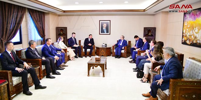 DAMASCUS, Jun.14, (ST)- The Minister of Foreign Affairs and Expatriates Faisal Al-Miqdad held on Tuesday talks with the Chairman of the Russian-Syrian Friendship Committee Dmitry Sablin and Donetsk Foreign Minister Natalia Nikonorova and Culture Minister Mikhail Zeltyakov.