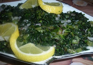 There are many ways to cook spinach, it can be prepared with vegetables such as olive oil, lemon juice, onions, and garlic, and it cooked with lamb meat and chicken are the most used, and with beef, goat and fish in some regions, as in coastal areas.