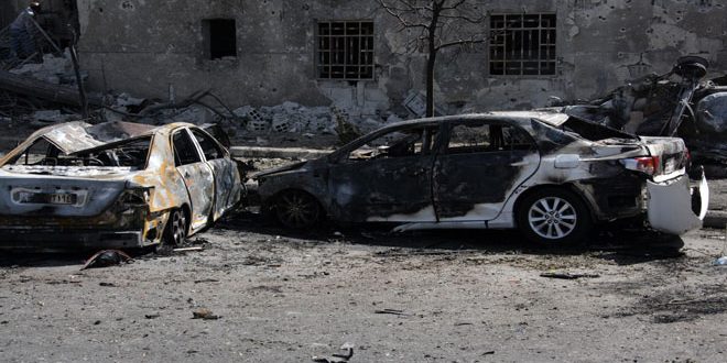 Yesterday, competent authorities persuaded 3 car bombs and destroyed 2 of them at Airport road in Damascus, while the third car bomb was surrounded in Bab Touma area where the suicide bomber driving the car detonated it, killing and injuring a number of civilians.