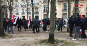 The branch of the National Union of Syrian Students and the Syrian Community in France organized a solidarity stand near the headquarters of the French Foreign Ministry and National Assembly in the center of Paris, calling for the lifting of unfair sanctions and unilateral coercive measures imposed by the West on Syria.