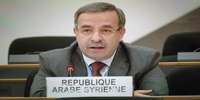 “ Contrary to allegations of human rights care and concern for improving the humanitarian situation of the Syrians, which are claimed by sponsor countries that discuss this item, the Syrians who live under the siege and the economic terrorism being imposed on them in violation of all their basic rights, including their right to healthcare, food and descent livelihood, these Syrians  wonder what human rights these countries talk about “ Hussam Eddin Ala,  the permanent representative of Syria to the United Nations office and other international organizations in Geneva said in a statement to the 45 th session of the Human Rights’ Council about the situation of Human rights in Syria.