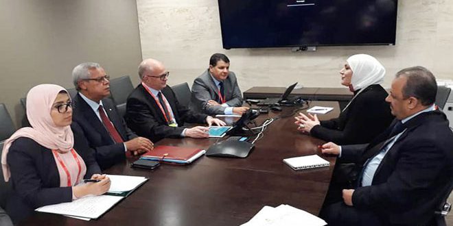 GENEVA, (ST)- Syria’s Minister of Labor and Social Affairs Rima al-Qaderi and Algeria’s Minister of Labour, Employment and Social Security Tidjani Hassan Haddam have discussed mechanisms to activate memorandums of Understanding signed between the two countries in the domain of employment and social insurance.