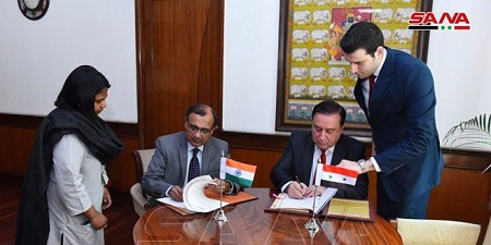 The memo was signed by Secretary for Economic Relations in the Indian Ministry of External Affairs T.S Tirumurti, and Syria’s Ambassador to India Riyad Abbas.